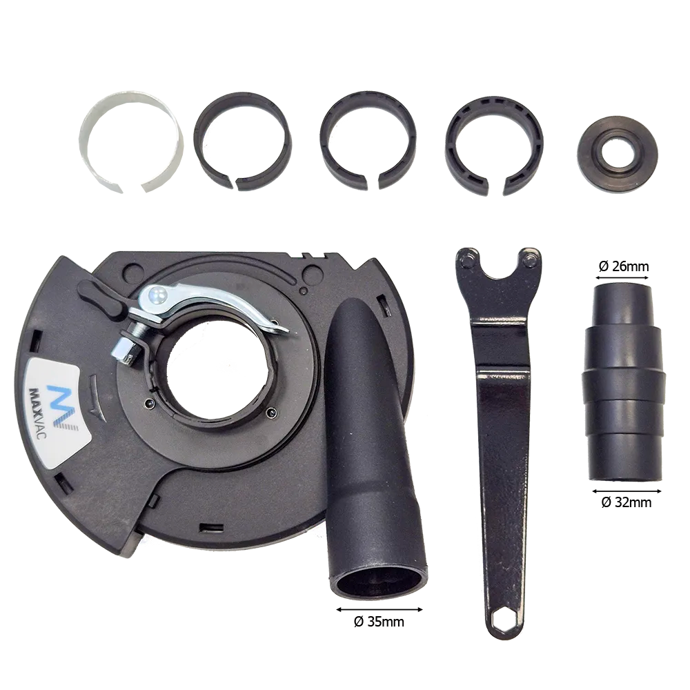With a replaceable brush seal, it ensures optimal suction and longevity, minimizing airborne dust and reducing cleanup time. Its universal vacuum connection makes it compatible with all professional dust extraction systems, while the quick 60-second installation ensures seamless integration with most angle grinders.
