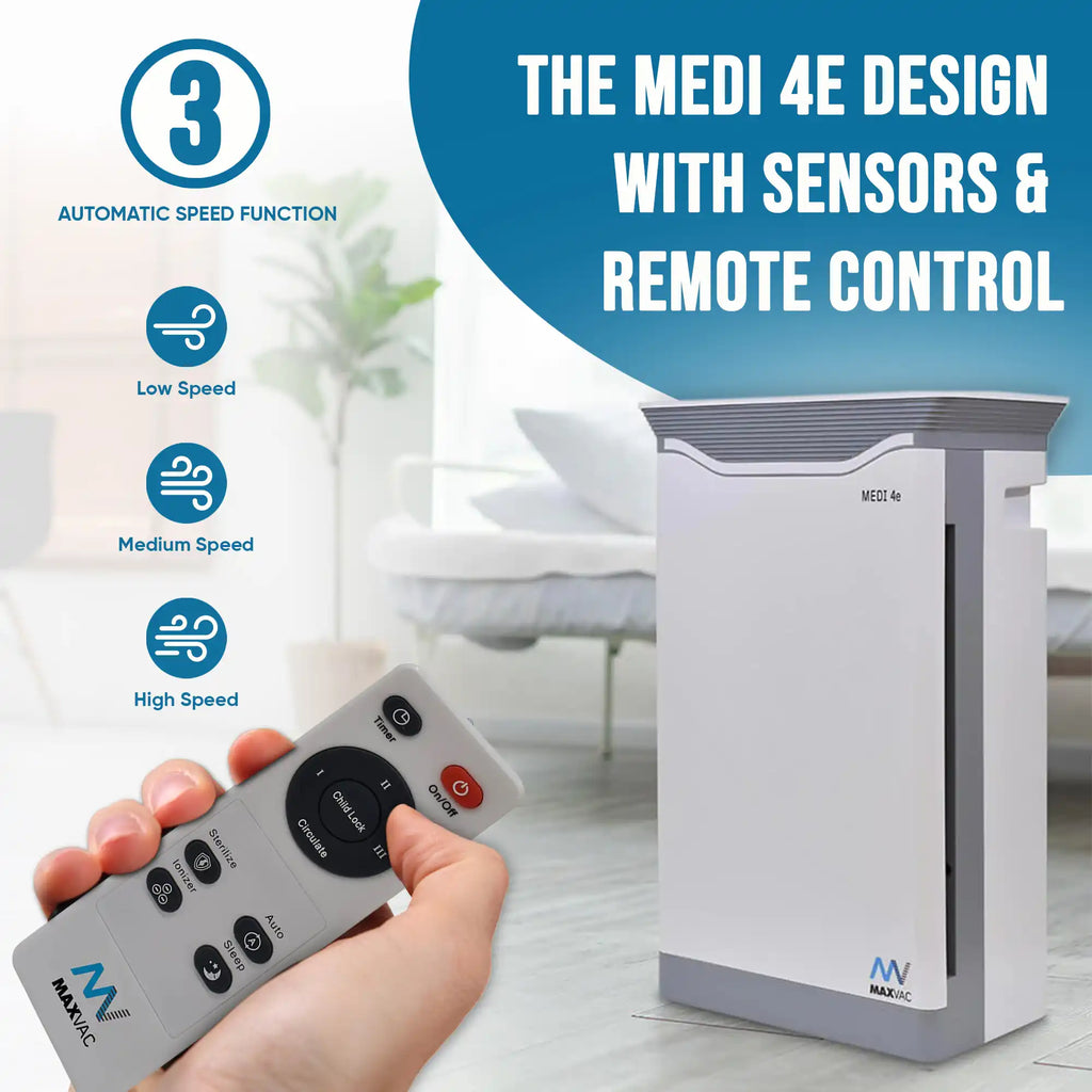 Who Benefits Most: The Medi® 4e is tailored to meet the needs of those who crave clean and healthy air. It effectively removes dust, pollen, pet dander & hair, bacteria, mold spores, and even viruses from the air. Whether you're seeking optimal air quality in your home, a productive small office, or a medical environment, the Medi® 4e is your answer.