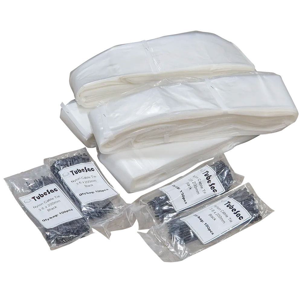 The TubeSac Dusty TP22 is a long tube of 3-layer co-extruded PE that allows you to customize the size of the bag by using a cable tie or knot. This means that the bag is always the right size for your needs, and you avoid paying for unused material, which in turn leads to lower waste and handling costs.
